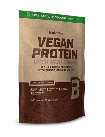 • v případě hotového nápoje smíchaného s vodou** platí pouze pro produkt s příchutí Caffé Latte Rostlinné proteiny jsou známé tím, že nejsou komplexním zdrojem bílkovin, jako je tomu u proteinů živočišného původu. To znamená, že neobsahují všechny esenciální aminokyseliny, které naše tělo potřebuje. Ale kombinací více druhů rostlinných zdrojů můžeme získat plnohodnotný rostlinný protein. U Vegan Proteinu výrobce tohoto dosáhl kombinací dvou proteinů, které se vzájemně skvěle doplňují. Rýžového proteinu, který obsahuje málo lysinu, ale je bohatý na sirné aminokyseliny (jako je cystein a methionin) a hrachový protein, který sice obsahuje méně sirných aminokyselin, ale je bohatý na lysin. Kombinací těchto dvou zdrojů nám vzniká plnohodnotná bílkovinová rostlinná směs. Tato směs je navíc obohacena o tři druhy superpotravin - quinoa, goji a acai. Mouka z Quinoy - starověcí Inkové považovali tuto populární potravinu za matku všech obilovin, zatímco se jedná pouze o „pseudo-obilovinu“. Má nižší obsah uhlohydrátů než běžné cereálie, ale obsah bílkovin je vyšší (16%). Navíc je to vynikající minerální zdroj, protože obsahuje draslík, vápník, hořčík a železo. Prášek z bobulí Acai - bobule Acai, která je původem z amazonských deštných pralesů, má vynikající hodnotu ORAC (antioxidační potenciál potravin, schopnost pohlcovat kyslíkové radikály). Prášek z bobulí Goji - bobule Goji (známé také jako kustovnice) se v Číně používají už tisíce let jako afrodiziakum. Jasně červené ovoce, které svou chutí připomíná směs třešní a ostružin, obsahuje 8 esenciálních aminokyselin a velké množsví vitamínu C. Produkt je doporučován, pokud: