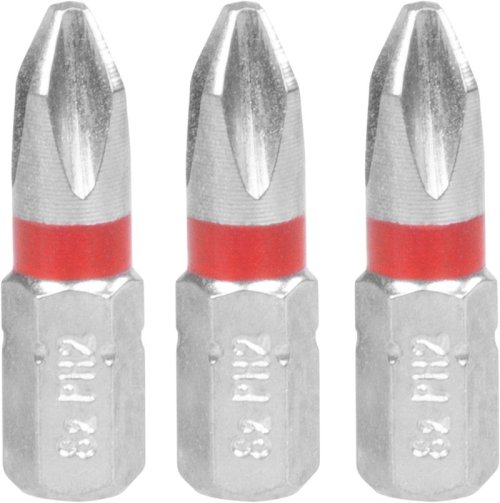 Kvalitní hroty PH2 délky 25 mm vyrobeny z oceli S2. Cena za sadu 3 ks. Bity jsou barevně odlišeny podle typu hrotu (PH červená). EAN 8585023321032