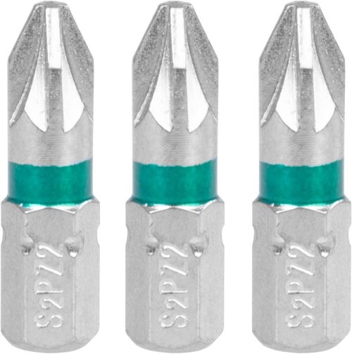 Kvalitní hroty PZ2 délky 25 mm vyrobeny z oceli S2. Sada 3 ks. Bity jsou barevně odlišeny podle typu hrotu (PZ zelená). EAN 8585023321070