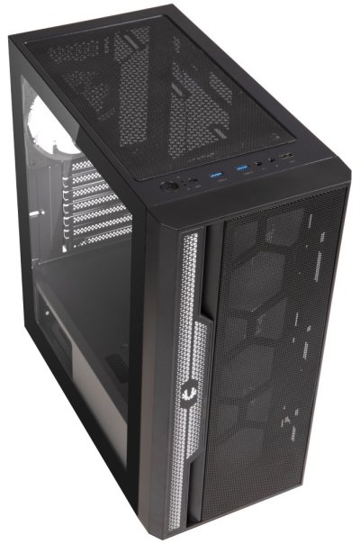 Moderní počítačová skříň s průhlednou bočnicí z tvrzeného skla. Formát Middle Tower nabízí dostatek prostoru pro uložení až čtyř disků. Na horním panelu se nachází dva USB 3.0 porty, jeden USB 2.0 port, sluchátkový výstup a audio vstup pro mikrofon. Skříň je vybavena čtyřmi 120mm ventilátory s ARGB podsvícením. Ve skříni je dostatek prostoru pro chladič CPU do výšky až 160 mm a grafickou kartu o délce až 345 mm. Skříň je dodávána bez zdroje. Součástí je také magnetický prachový filtr.