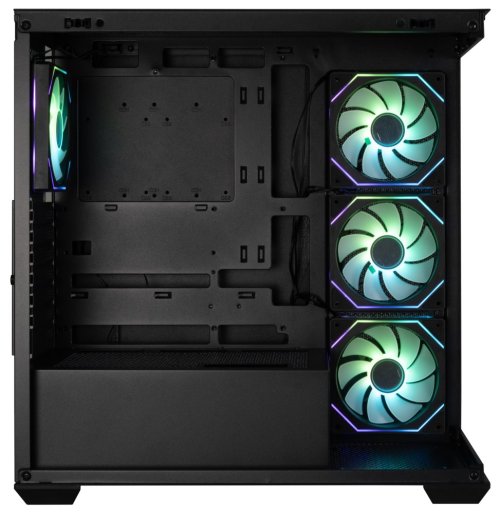Herní počítačová skříň nabízí stylovou prosklenou bočnici i přední panel a prvotřídní kovovou konstrukci. Skříň je osazena čtyřmi ventilátory o velikosti 120 mm s ARGB podsvícením a efektem nekonečného zrcadlení. Potěší také možnost rozšíření o další 3 ventilátory. Samozřejmostí jsou také prachové filtry. Důmyslné řešení umožňuje pohodlné umístění až 360 mm dlouhého výměníku vodního chlazení na horní straně. Ve skříni je dostatek prostoru pro chladič CPU do výšky až 181 mm a grafickou kartu o délce až 410 mm. Na horním panelu se nachází dva porty USB 3.0, jeden port USB-C, sluchátkový výstup a vstup pro mikrofon. Skříň je dodávána bez zdroje.