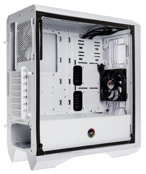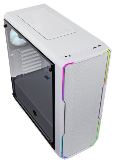 Moderní počítačová skříň s průhlednou bočnicí z temperovaného skla. Formát Middle Tower nabízí dostatek prostoru pro uložení až pěti disků, základní desky do velikosti ATX a až šesti ventilátorů. Předinstalovány jsou dva 120 mm ventilátory, z toho jeden s adresovatelným RGB podsvícením. Na horním panelu se nachází dva porty USB 3.0, sluchátkový výstup, audio vstup pro mikrofon a tlačítko pro rychlou změnu podsvícení. Ve skříni je dostatek prostoru pro chladič CPU do výšky až 160 mm a grafickou kartu o délce až 340 mm. Důmyslné řešení umožňuje pohodlné umístění až 360 mm dlouhého výměníku vodního chlazení na přední straně. Skříň je dodávána bez zdroje. Součástí skříně je také sada prachových filtrů.