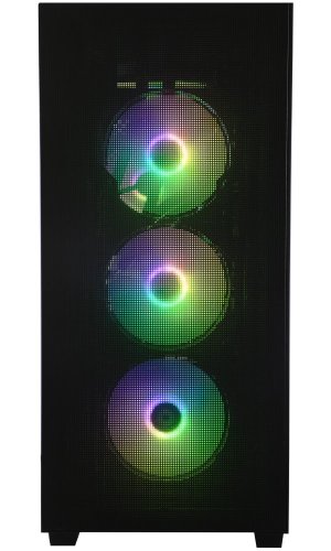 Kvalitní počítačová skříň formátu Middle Tower nabízí čtyři 2,5" a dvě 3,5" pozice pro SSD a pevné disky. Skříň je vybavena průhlednou bočnicí a poloprůhledným čelem s perforací pro optimální proudění vzduchu. Předinstalovány jsou čtyři 120mm ventilátory s FRGB podsvícením. Na horním panelu se nachází dva porty USB 3.0, jeden port USB 2.0, sluchátkový výstup a audio vstup pro mikrofon. Ve skříni je dostatek prostoru pro chladič CPU do výšky až 170 mm a grafickou kartu o délce až 355 mm. Důmyslné řešení umožňuje pohodlné umístění až 360 mm dlouhého výměníku vodního chlazení na přední straně. Potěší také přítomnost prachových filtrů. Skříň je dodávána bez zdroje.