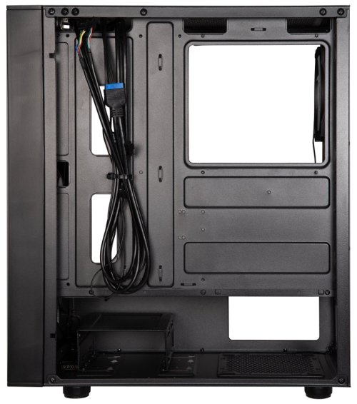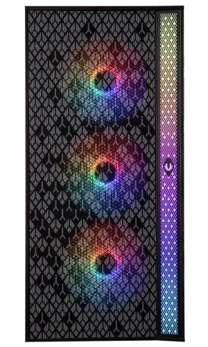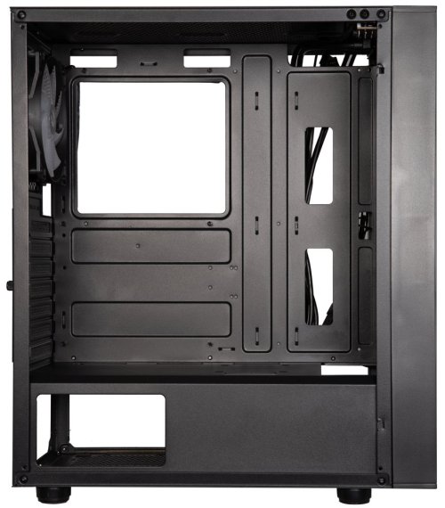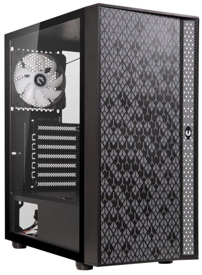 Moderní počítačová skříň s průhlednou bočnicí z tvrzeného skla. Formát Middle Tower nabízí dostatek prostoru pro uložení až čtyř disků. Na horním panelu se nachází dva USB 3.0 porty, jeden USB 2.0 port, sluchátkový výstup a audio vstup pro mikrofon. Skříň je vybavena čtyřmi 120 mm ventilátory se statickým RGB podsvícením. Ve skříni je dostatek prostoru pro chladič CPU do výšky až 160 mm a grafickou kartu o délce až 345 mm. Skříň je dodávána bez zdroje. Součástí je také magnetický prachový filtr.