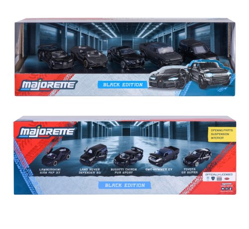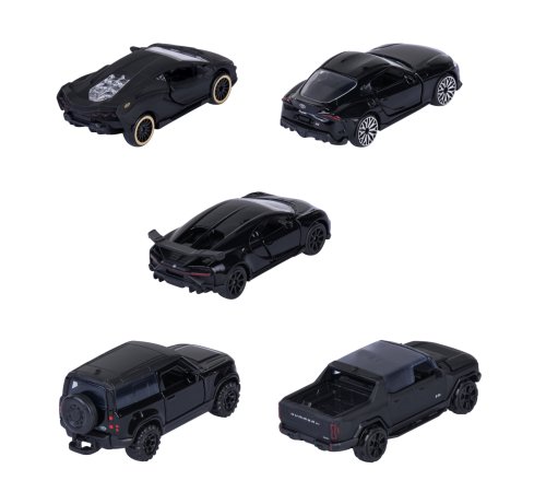 Kovová autíčka na volnoběh, s odpružením, otevíracími částmi a detaily interiéru, s vysoce kvalitním lakem a ráfky, v měřítku 1:64. Oficiální licence, sada 5 ks v dárkovém balení - Lamborhini Sián FKP 37, Land Rover Defender 90, Bugatti Chiron Pur Sport, GMC Hummer EV, Toyota GR Supra. Délka autíčka 7,5 cm.