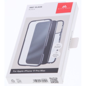 Black Rock 360° Glass, kryt pro Apple iPhone 17 Pro Max, skleněný, předn +zadní díl, průhledný/černý