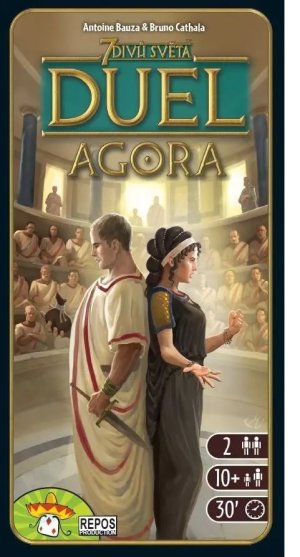 Rozšíření k základní hře "DUEL" dodá hráčům ještě větší prožitek ze hry. Rozšíření "Agora" přináší do hry desku senátu, na které budou hráči skrze senátory soupeřit o vliv nad jeho jednotlivými částmi. Ovládnutí většiny senátu je pak novou podmínkou vítězství ve hře. Ke hře potřebujete základní hru 7 Divů světa - DUEL! Balení obsahuje: