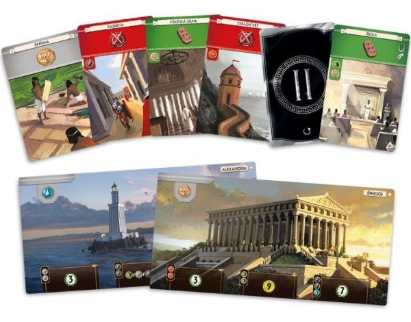 7 desek divů 148 karet věků: 49 karet I. věku, 49 karet II. věku a 50 karet III. věku 78 mincí: 54 mincí hodnoty 1 a 24 mincí hodnoty 3 48 žetonů vojenského střetnutí: 24 porážek a 24 vítězství (8 za každý věk) 1 bodovací deska 3 listy popisu efektů 1 seznam karet a řetězců pravidla
