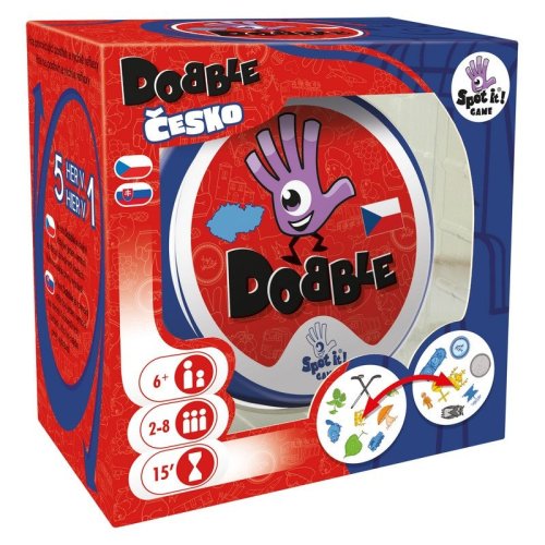 Populární postřehová hra nyní na motivy Česka. Ikonické symboly z českého prostředí a historie si oblíbí opravdu každý! Rychlost, postřeh, reflexy! Dobble to je 50 různých symbolů, 55 karet, 8 symbolů na kartě a každé dvě karty spolu mají společný pouze jeden. Hra nabízí zcela unikátní zábavu. Hráči zde hledají dva stejné symboly na kartách při různých verzích hry (v pravidlech je popsáno celkem 5 her). Super jsou kulaté karty i jednoduchá pravidla vysvětlená doslova za pár sekund. Cílová skupina jsou děti i rodiče - všichni, kdo se chtějí pořádně bavit a nemají čas pročítat dlouhá pravidla. Plechová krabička zaručuje bezpečí karet a je i další přidanou hodnotou. Vyzkoušejte i Vy hru Dobble a budete nadšení, jak i tak jednoduchá hra může být zábavná.