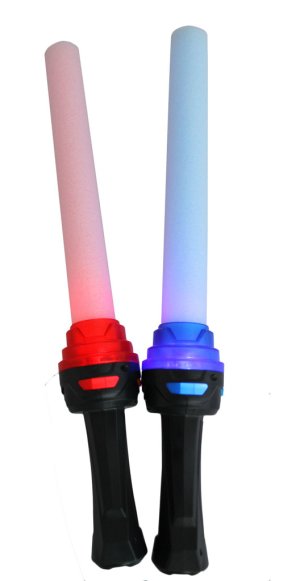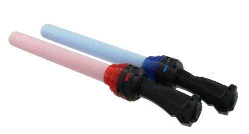 Bojujte proti sobě s infračervenými meči. Svítí a vydávají zvuky podle toho, jak souboj probíhá. Pokud dojde ke zkřížení mečů, ozve se jiný zvuk, než při zásahu protivníka. Pokud zasáhnete nepřítele do jakékoli části těla, meč zavibruje a ozve se zvuk zásahu. Protivníkův meč vydá rozdílný zvuk a z elektronického displeje se mu odečte jeden život. Každý bojovník má celkem 9 životů. Pokud již na meči zbývají poslední 2 životy, ozve se varovné zvolání. Při ztrátě posledního života meč oznámí konec souboje. Délka meče je 53 cm. Meče jsou vyrobené z pěnového materiálu, tudíž jsou zcela bezpečné. Každý meč vyžaduje 3 x AAA baterie (nejsou součástí výrobku).