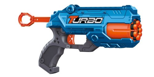 Blaster Turbo s dostřelem 8–15 m – připrav se na akční zábavu! Tento blaster nabízí skvělý dostřel a vysokou přesnost. Balení obsahuje pistoli a 8 ks nábojů vyrobených z měkkého pěnového materiálu, s kulatou hlavou pro bezpečné střílení. Náboje jsou recyklovatelné a šetrné k životnímu prostředí, ideální pro dlouhé akční hry.