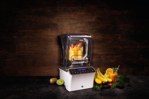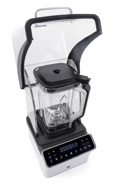 Po uzavření mixovací nádoby se surovinami sklopíte odhlučňovací kryt, jedním dotykem spustíte vakuování a poté můžete mixovat.