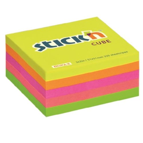 Samolepicí bloček neonových barev ve tvaru mini kostky Lístky jdou snadno nalepit a odlepit, přesto skvěle drží Nezanechávají stopy po lepidle Barva: neonový mix barev Rozměry: 51,0 x 51,0 mm Počet listů: …