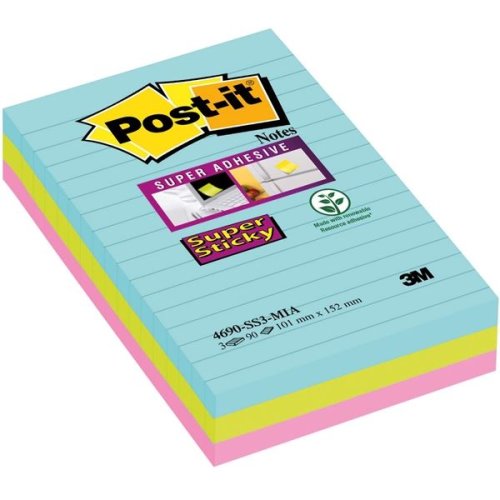 3M™ Post-it® silně lepicí bločky kolekce Cosmic Barva: mix barev - modrá, zelená, růžová Rozměry: 101,0 x 152,0 mm XXL Počet lístků v bločku: 90 Počet bločků v balení: 3 Počet lístků: 270