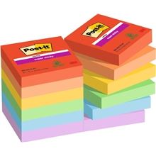 Post-it® silně lepicí bločky kolekce PLAYFUL, rozměry 47,6x47,6 mm, 12 bločků po 90 lístcích barvy: Candy červená, Vital pomerančová, Slunečná žlutá,jetelově zelená, nebeská modrá,duhová fialová
