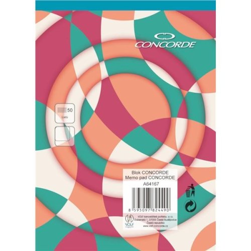 Čistý šitý blok CONCORDE ve formátu A6 s perforací Bezdřevý bílý papír o síle 55 g/m2 Blok obsahuje 50 listů Atraktivní design