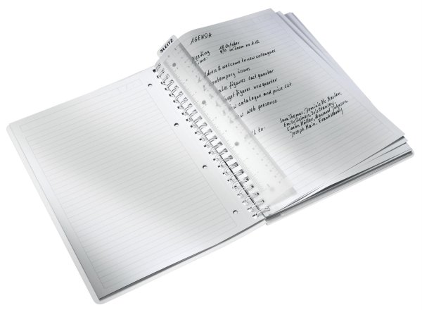 Dvoubarevné PP desky s WOW barvami a embosovaným povrchem, uvnitř čistě bílé 80 listů kvalitního neprůhledného papíru (80 g/m2) s certifikací FSC® Mikro perforované a děrované listy papíru pro snadné …