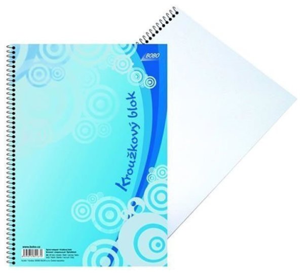Klasický kroužkový blok ve formátu A4 obsahuje 40 čistých listů. <br> <br> Poznámkový blok v moderním designu s boční kroužkovou vazbou obsahuje 40 čistých listů z bezdřevého papíru. Kroužková spirála umožňuje snadné otáčení a odtrhávání stránek. Tento blok je ideální na školní i pracovní poznámky.