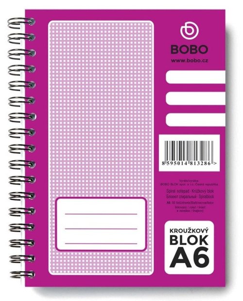 Kroužkový blok s boční spirálou ve formátu A6 obsahuje 50 linkovaných listů. br brPoznámkový blok s boční kroužkovou vazbou obsahuje 50 linkovaných listů z bezdřevého papíru. Kroužková spirála umožňuje snadné otáčení listů až o 360° bez vzájemného posunutí stránek. Blok zůstává otevřený na zvolené stránce a samovolně se nezavírá. Samozřejmostí je snadné odtržení listu.