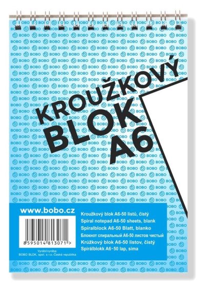 Klasický kroužkový blok ve formátu A6 obsahuje 50 čistých listů. br brPoznámkový blok v moderním designu s horní kroužkovou vazbou obsahuje 50 čistých listů z bezdřevého papíru. Kroužková spirála umožňuje snadné otáčení a odtrhávání stránek. Tento blok je ideální na školní i pracovní poznámky.