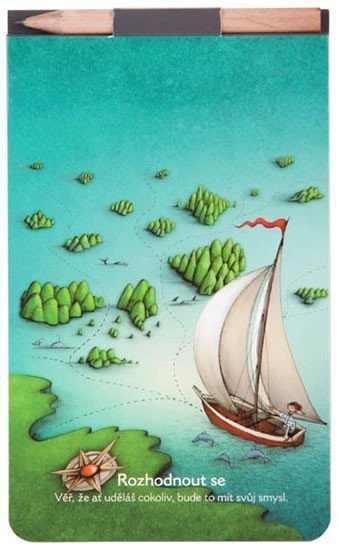 Formát 150 x 90 mm, čistý (nelinkovaný), lepený, tužka v bloku, magnet na zadní straně, speciální knižní papír (Holmen book), motiv Rozhodnout se. <br> <br> Poznámkový blok s tužkou a magnetem <br> • Krásná barevná obálka s ilustrací od Lucie Ernestové <br> • Vysoká gramáž papíru <br> • Krémový Holmen Book papír <br> • 40 čistých listů <br> • lepená vazba <br> • Formát zápisníku je 15 x 9 cm <br> <br> Lucie Ernestová <br> Jsem ilustrátorka, grafička a máma dvou kluků. Vymýšlím a vydávám hry šité na míru dětskému humoru a fantazii a také poznámkové bloky v kroužkové vazbě. Kreslím inspirační obrázky na důležitá životní témata, která se objevují i na obálkách zápisníků, bloků nebo například Vymalovánek. Obrázky se stávají zrcadlem našich vlastních postojů a odrazovým můstkem pro zajímavé rozhovory. Jsou bezpochyby vhodným pomocníkem pro všechny moudré rodiče a učitele, kterým se mohou stát průvodci jejich vlastními pohledy na svět. <br> <br> Holmen Book papír <br> Jedná se o speciální knižní papíry, který se skvěle hodí na psaní a kreslení. Díky krémovému vzhledu je příjemnější na práci než klasický bělený papír. Holmen Book papír je sice dřevitý, ale papír má hned několik certifikátů, které zaručují ekologicky šetrný papír vůči přírodě - FSC®, PEFC™ a EU Ecolabel.