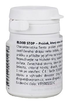 Použití: Špičkou nože, lžičkou nebo kyretou naberte trochu prášku a přiložte jej přímo na krvácející dráp, Jemně přitlačte dokud se krvácení nezastaví,