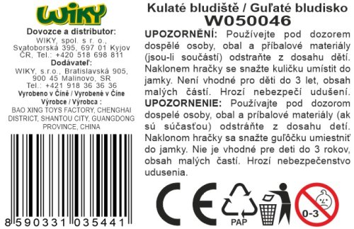 Bludiště 3D kulaté. Velikost 8 cm. Cílem je dostat kuličku do jamky. Když propadne kulička dírou dovnitř, vypadne vždy na startu. Stojánek na kulaté bludiště v balení. více variant. Obrázkové řešení na obalu.