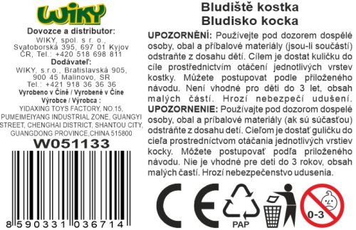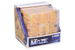 Bludiště kostka. Velikost 8 cm. Cílem hry je dostat kuličku do cíle pomocí otáčení vrstev kostky. Návod součástí balení. 3 varianty - žlutá, oranžová, zelená.