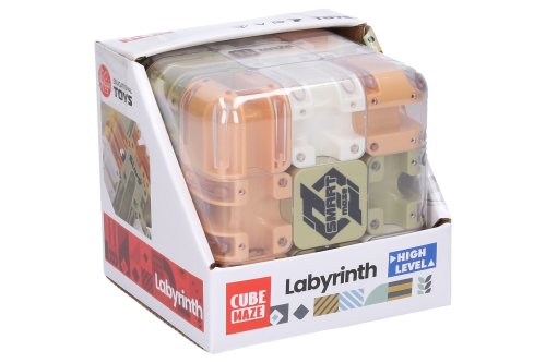 Bludiště kostka barevná. Velikost 8,5cm. Cílem hry je dostat kuličku do cíle pomocí otáčení vrstev kostky. návod součástí