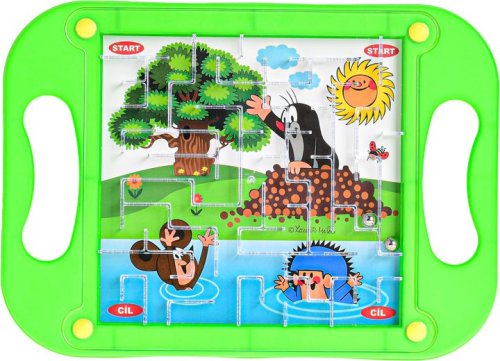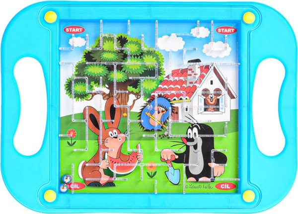 úkolem je umístit všechny kovové kuličky do důlků procvičuje motoriku a koordinaci pohybů, zručnost, reakce a hlavně trpělivost rozměry labyrintu jsou cca 20,5 x 15 x 1,5 cm