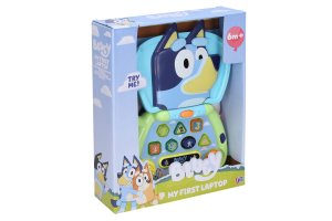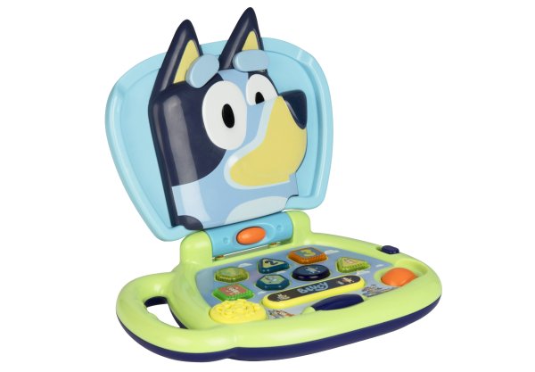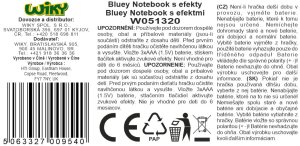 Bluey Notebook s efekty. Velikost 26 cm. Baterie 3xAAA součástí. Stisknutím tlačítka oranžového tlačítka uprostřed pejsek zvedá obočí. 14 různých zvukový efektů, tlačítka svítí. ON/OFF přepínač na straně.