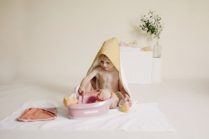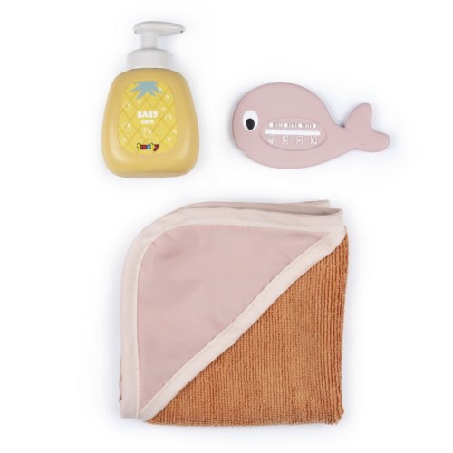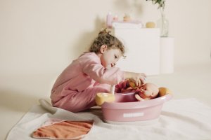 Vanička s opěrkou hlavy pro panenky Smoby Baby Nurse s elektronickou sprchou a bublinkovou funkcí se světlem. Z automatické sprchové hlavice vyteče skutečná voda pouhým stisknutím tlačítka. Vana má elektronický modul se 2 funkcemi: uzavřený okruh vodní trysky a bublifuk se světlem. Polička nabízí dostatek místa pro uložení vloženého příslušenství: osušky z bavlněného froté, lahvičky na šampón s pumpovací funkcí a teploměru ve tvaru velryby. Teploměr je citlivý na teplo, při kontaktu s vodou mění barvu. Vhodné pro panenky do 42 cm. Panenka není součástí balení. Rozměry (DxŠxV): 40 x 30 x 23 cm.