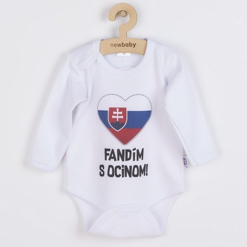 Originální bavlněné kojenecké body s dlouhým rukávem New Baby, s vtipným nápisem Fandím s ocinom a obrázkem slovenské vlajky. Barvy použité k potisku jsou certifikované a vhodné pro miminka. Je vyrobeno z příjemného a kvalitního materiálu, ve kterém se bude Vaše miminko cítit příjemně. Body má zapínáni na cvočky na ramínku a mezi nožičkami, což usnadňuje oblékání a přebalování. Dopřejte Vašemu miminku vyniknout v originálním body. Složení: 100% bavlna. Rozměry: obvod kolem hrudníku cca 34 cm, délka rukávu cca 16 cm, celková délka cca 30 cm.