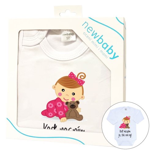 Originální bavlněné kojenecké body s dlouhým rukávem New Baby, s vtipným nápisem Keď nespím ja, tak ani vy! A obrázkem roztomilé holčičky. Body má kolem krčku, nožiček a ručiček barevné lemování. Barvy použité k potisku jsou certifikované a vhodné pro miminka. Je vyrobeno z příjemného a kvalitního materiálu, ve kterém se bude Vaše miminko cítit příjemně. Body má zapínáni na cvočky na ramínku a mezi nožičkami, což usnadňuje oblékání a přebalování. Dopřejte Vašemu miminku vyniknout v originálním body. Složení: 100% bavlna. Rozměry: obvod kolem hrudníku cca 36 cm, délka rukávu cca 18 cm, celková délka cca 32 cm.<BR>Produkt české značky