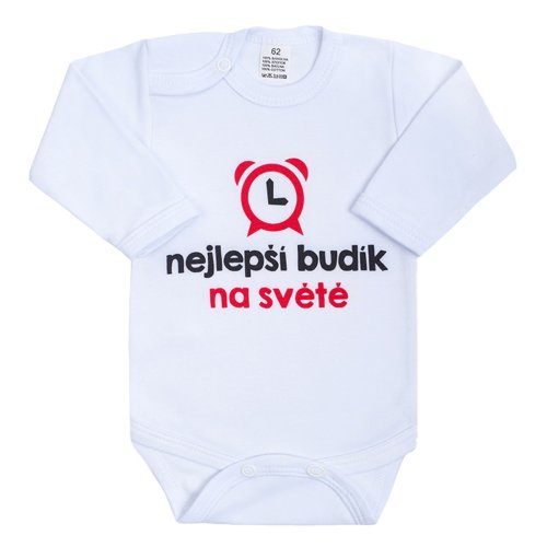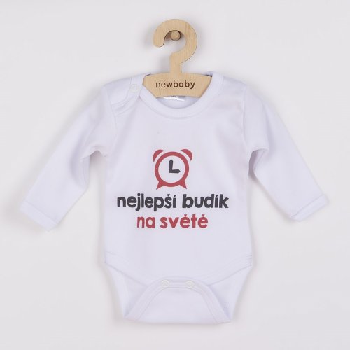 Originální bavlněné kojenecké body s dlouhým rukávem New Baby, s vtipným nápisem nejlepší budík na světě a ilustrovaný budíček. Barvy použité k potisku jsou certifikované a vhodné pro miminka. Je vyrobeno z příjemného a kvalitního materiálu, ve kterém se bude Vaše miminko cítit příjemně. Body má zapínáni na cvočky na ramínku a mezi nožičkami, což usnadňuje oblékání a přebalování. Dopřejte Vašemu miminku vyniknout v originálním body. Složení: 100% bavlna. Rozměry: obvod kolem hrudníku cca 42 cm, délka rukávu cca 23 cm, celková délka cca 38 cm.<BR>Produkt české značky