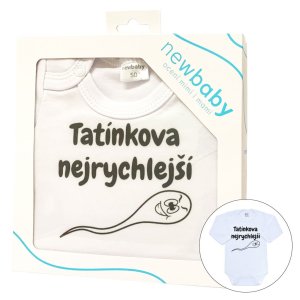 Originální bavlněné kojenecké body s dlouhým rukávem New Baby, s vtipným nápisem TATÍNKOVA NEJRYCHLEJŠÍ. Barvy použité k potisku jsou certifikované a vhodné pro miminka. Je vyrobeno z příjemného a kvalitního materiálu, ve kterém se bude Vaše miminko cítit příjemně. Body má zapínáni na cvočky na ramínku a mezi nožičkami, což usnadňuje oblékání a přebalování. Dopřejte Vašemu miminku vyniknout v originálním body. Složení: 100% bavlna. Rozměry: obvod kolem hrudníku cca 34 cm, délka rukávu cca 16 cm, celková délka cca 30 cm.<BR>- Produkt české značky