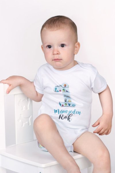 Originální bavlněné kojenecké body s dlouhým rukávem New Baby, s vtipným nápisem Už mám 1 rok a obrázkem velké jedničky s balónky. Barvy použité k potisku jsou certifikované a vhodné pro miminka. Je vyrobeno z příjemného a kvalitního materiálu, ve kterém se bude Vaše miminko cítit příjemně. Body má zapínáni na cvočky na ramínku a mezi nožičkami, což usnadňuje oblékání a přebalování. Dopřejte Vašemu miminku vyniknout v originálním body. Složení: 100% bavlna. Rozměry: obvod kolem hrudníku cca 50 cm, délka rukávu cca 26 cm, celková délka cca 42 cm.<BR>Produkt české značky