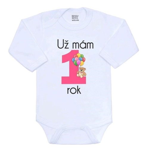 Originální bavlněné kojenecké body s dlouhým rukávem New Baby, s vtipným nápisem Už mám 1 rok a obrázkem velké jedničky s balónky. Barvy použité k potisku jsou certifikované a vhodné pro miminka. Je vyrobeno z příjemného a kvalitního materiálu, ve kterém se bude Vaše miminko cítit příjemně. Body má zapínáni na cvočky na ramínku a mezi nožičkami, což usnadňuje oblékání a přebalování. Dopřejte Vašemu miminku vyniknout v originálním body. Složení: 100% bavlna. Rozměry: obvod kolem hrudníku cca 46 cm, délka rukávu cca 24 cm, celková délka cca 40 cm.<BR>Produkt české značky