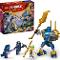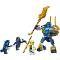 Děti od 6 let se stavebnicí LEGO® NINJAGO® (71805) Bojový balíček Jayova robota znovu prožijí akční bojové scény z 2. řady televizního seriálu NINJAGO® Dračí povstání. Součástí této nindžovské stavebnice je robotický oblek s pohyblivými pažemi, nohama a trupem, který třímá velký zlatý meč a střílí ze 2 vystřelovačů.