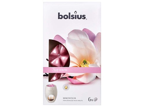 Vonné vosky Bolsius Aromatic True Scent – Magnolia okouzlí svou čistou, ženskou vůní kvetoucích magnolií. Ideální pro relaxaci nebo zútulnění domova. Vosk se rychle rozpouští a uvolňuje vůni plnou jemnosti a lehkosti. Balení s 6 dílky umožňuje snadné a opakované použití.