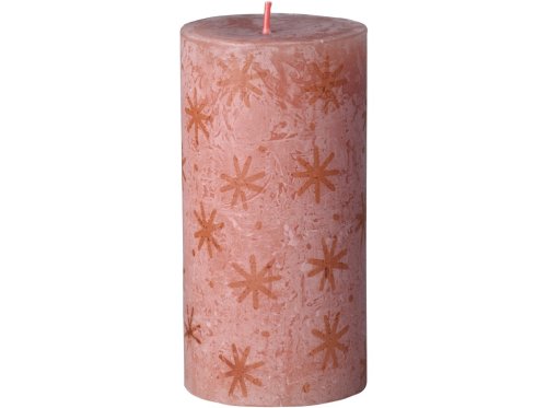 Rustikální svíčka ve tvaru válce v oranžové barvě s motivem hvězd. Válcový tvar svíčky je jednoduchý a elegantní, vytvoří ve Vašem bytě nezapomenutelnou atmosféru, pocit klidu a pohody. Svíčka je vyrobena z kvalitního vosku a je ideální pro dekoraci domova nebo jako dárek. Nejčastěji se díky své délce používá do svícnů nebo třeba adventních věnců. Svíčka má rozměry 68x130mm, doba hoření až 60 hodin.