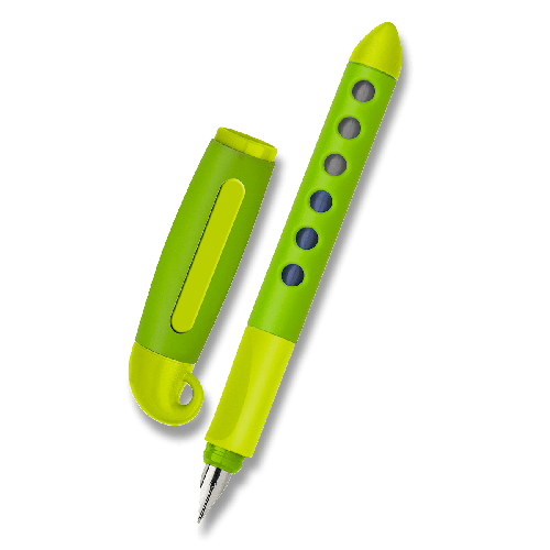 • ergonomická univerzální oblast úchopu z měkkého materiálu podporující správné držení třemi prsty, * kvalitní iridiový hrot pera - odolný i vůči vyššímu tlaku, * standardní inkoustové bombičky součástí balení, * okénko pro kontrolu obsahu inkoustové náplně v bombičce, * oblast úchopu speciálně vyvinuta zvlášť pro praváky a zvlášť pro leváky, * speciální tvar víčka a konec pera zamezuje kutálení po lavici, TIP: V NABÍDCE MÁME I NÁHRADNÍ BOMBIČKY FABER_CASTELL,  , [pro praváky]