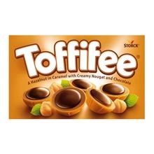 Toffifee, celé jádro lískového oříšku v karamelu s nugátovým krémem a kapkou hořké čokolády na povrchu
