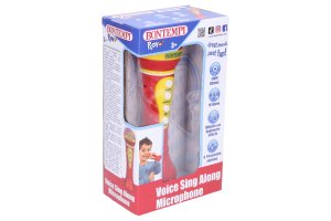 Bontempi Mikrofon Voice Sing-a-Long červený. Vydává světelné efekty. 16 demo skladeb (2 tlačítka, 10+6), ON/OFF přepínač, efekty jásotu a potlesku, 8 bicích rytmů.