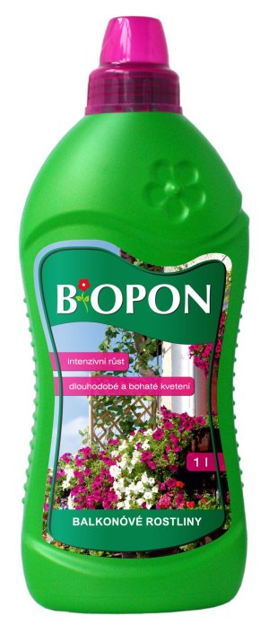 Biopon pro balkónové rostliny je vícesložkové minerální hnojivo určené pro balkónové a terasové rostliny. Obsah dusíku v amidové formě prodlužuje účinnou dobu. Je dostačující rostliny hnojit každých 10 dní. Optimálně vybírané množství draslíku rostliny povzbuzuje k bohatému květu.