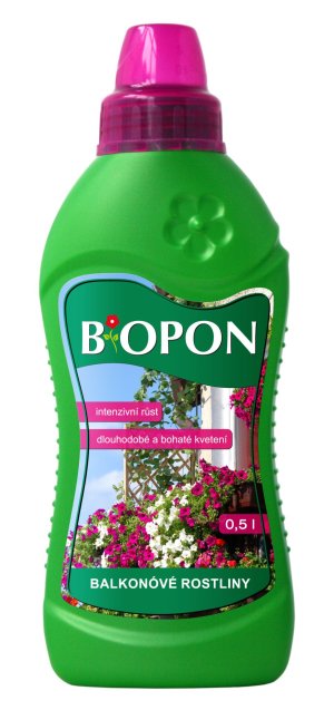Biopon pro balkónové rostliny je vícesložkové minerální hnojivo určené pro balkónové a terasové rostliny. Obsah dusíku v amidové formě prodlužuje účinnou dobu. Je dostačující rostliny hnojit každých 10 dní. Optimálně vybírané množství draslíku rostliny povzbuzuje k bohatému květu.