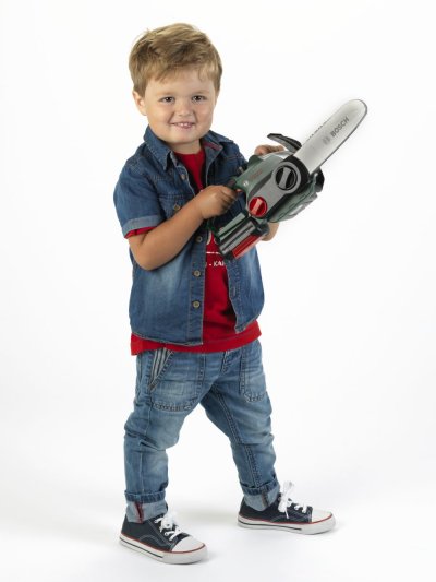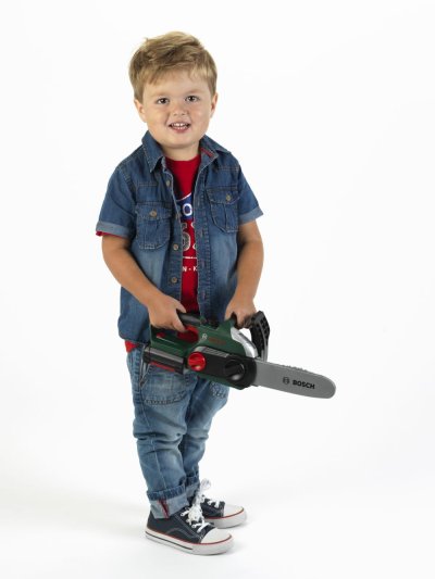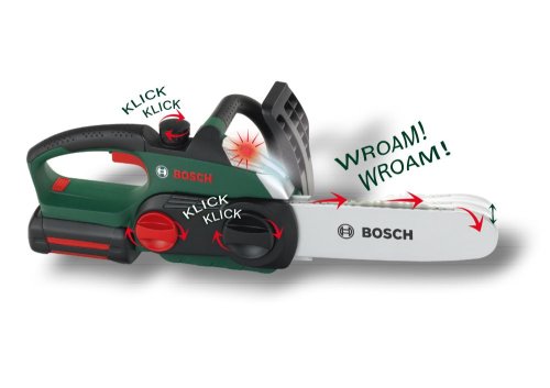 Dětská motorová pila v licenci značky Bosch, pro malé pomocníky na zahradě. Motorová pila vydává zvuky jako opravdová, Má pohyblivý řetěz, svítí, vydává zvuky u otáčení s uzávěry a různými kolečky. Produkt je na baterie 3xR6 (nejsou součástí balení). Baleno v krabici s výřezem. Doporučený věk 3+