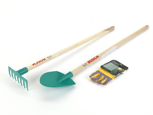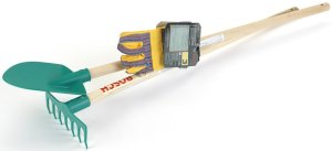 Set zahradního nářadí v licenci Bosch. Skvělý pomocník pro malé pomocníky na práci na zahradě. Set obsahuje Hrabičky, rýček a rukavice. Násada je dřevěná s plastovým koncem. Výška hrabiček 72cm, výška rýče 85cm. Baleno volně, Doporučený věk 3+