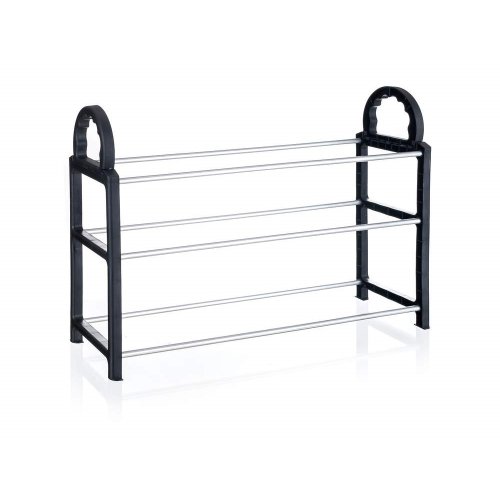 Stojan na boty je praktický pomocník pro ukládání bot. Materiál - chromované trubky a plastové bočnice v černé barvě. Botník lze velmi dobře využít i k vnitřnímu vybavení skříní či šaten.