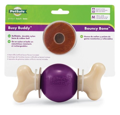 Kost je vyrobena z odolného materiálu. Lze ji rozšroubovat a nasadit pamlsky-plátky, které dokáží psa zabavit na dlouhou dobu. Hračky Busy Buddy® s pamlskem ve tvaru kroužku pomáhají hravou formou přesměrovat pozornost pejska od poškozování nábytku či obuvi k hračkám Busy Buddy®.